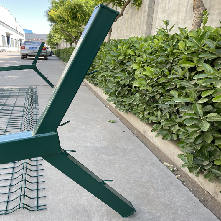 機場外圍防御鋼網墻首先是廠家與客戶相互溝通好每一個詳細參數之后,開始采購原材料進廠,工人根據相應的圖紙下料生產,做好焊接好的模具,然后就是焊接成品,一般機場圍界的外框為角鐵外框,外框規格為:50*50*5mm的鍍鋅角鐵,中間絲徑為5mm,網孔為50*100mm。立柱為60*80的方管上方加Y型立柱。焊接好之后下一步就是打磨,工人經過自己的打磨在浸塑,使機場防護網表面光滑沒有焊點凸起。下一步就是浸塑流程,把焊接好的機場防御網放入高溫加熱的庫房,加熱到一定的溫度之后,然后進行熱浸塑。下一步對熱浸塑好的機場護欄網進行流光處理,每一套出來的護欄都有光滑的表面,美觀實用。