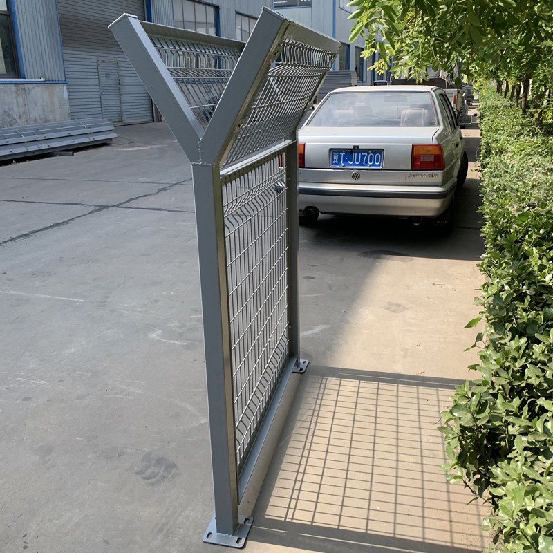 2 機場隔離柵的結構由立柱、含、帶框電焊網片、不銹鋼刀片刺圈、緊固件等構成。