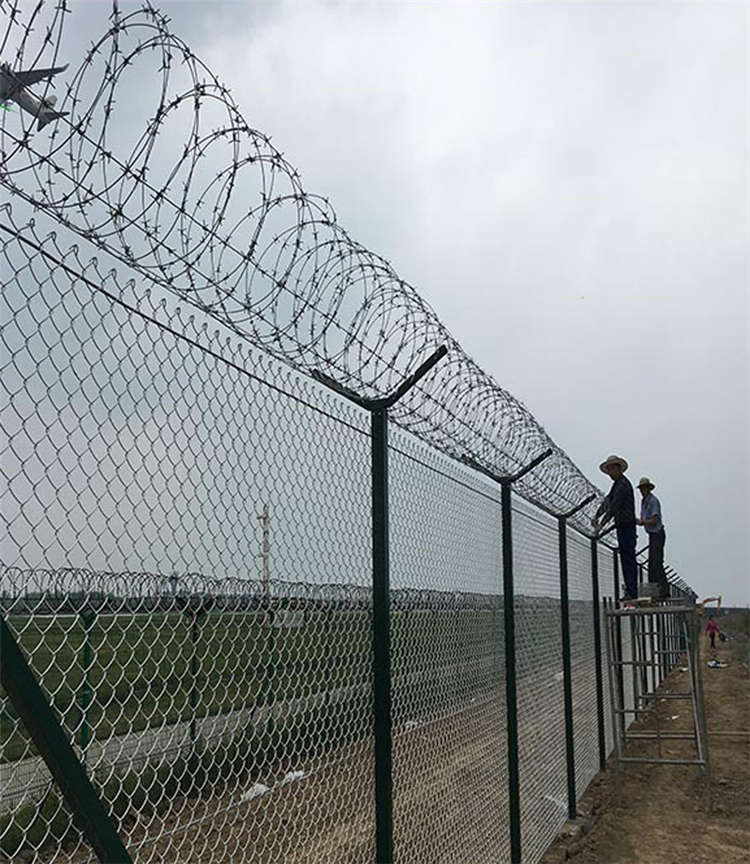 鋁包鋼機場圍界主要用于機場外圍的防護使用是護欄網的一種,又被稱作機場圍欄。鋁包鋼絲機場護欄具有獨具匠心的鋼絞線穿插式連接立柱和網片,在保證美觀大方、增強通透性的同時,能夠承受20kN推力的鋁包鋼絞線使整體圍界足夠堅固,大大降低人為對圍界的損壞,防御外來人員入侵。本產品具有美觀、實用、大方、防腐性好、無需保養、防墓爬能力強、方便運輸和安裝等特點,關鍵的是鋁包鋼絲機場護欄可以使用30年以上,強度可達600Mpa。主要適用于機場周圍的隔離防護,美化及防翻越工程。
