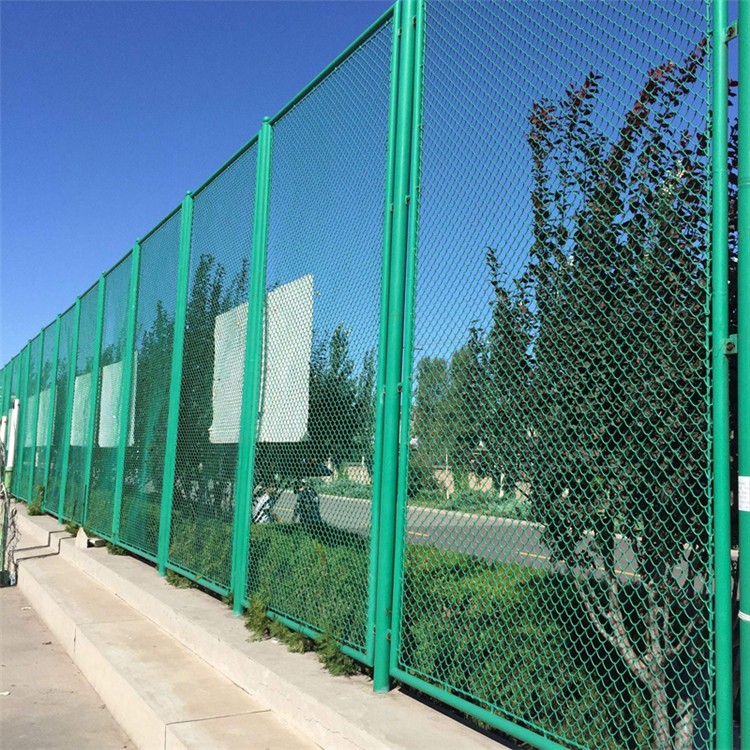球場圍網表面處理:圍網采用PE/PVC包塑絲,立柱、邊框采用噴塑、浸塑處理