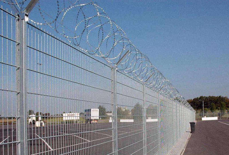 監獄圍墻內外均要設置防攀爬鋼網墻,鋼網墻應采用熱鍍鋅+表面噴涂雙重防腐處理,設計耐腐蝕年限應不少于10年。