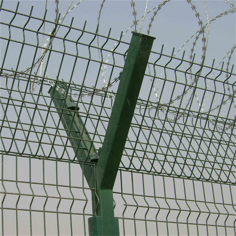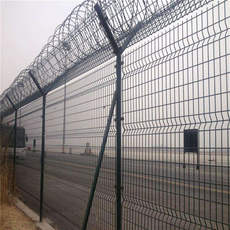機(jī)場(chǎng)圍界又稱作“Y型安全防御網(wǎng)”,是由V型支架立柱、加強(qiáng)型焊接網(wǎng)片、安全防盜連接件和熱鍍鋅刀片刺絲網(wǎng)組成。無(wú)論是強(qiáng)度和安全防御等級(jí)都非常高。本文以焊接方格網(wǎng)片為例進(jìn)行簡(jiǎn)單介紹規(guī)格及技術(shù)參數(shù)。