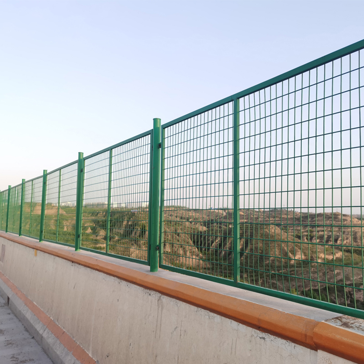 高架橋框架防拋網/橋梁防拋網(又名橋梁防護網、橋梁護欄網)是由低碳鋼絲經過拉拔、編織、焊接、浸塑等一系列工藝加工而成,高架橋框架防拋網用于市政高架橋,高速公路立交橋, 鐵路立交橋,過街天橋,港口碼頭,畜牧,養植等的護欄防護。高度的設置需要根據施工現場實際情況來確定,一般高度為1.5m-4m。