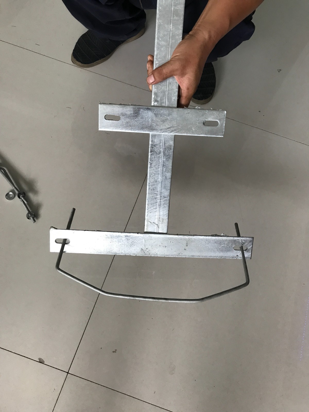 立桂支架采用50*30mm*2mQ235形鋼管和寬50mm度4.5長度分別為246m和428m的兩塊Q235扁鐵焊接制作矩形鋼管上部焊接掛鉤采用長度30mm絲徑5m冷拔鋼制作,加密支架采用同樣與立柱支架的矩形鋼管制作,表面進行熱鍍鋅處理,鍍鋅量270g/m