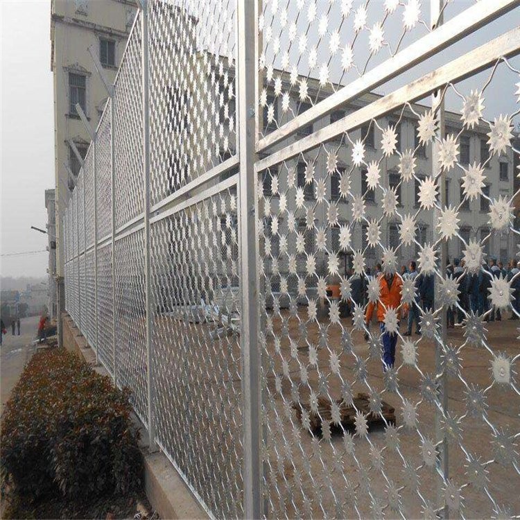4、網(wǎng)片還可換成密紋網(wǎng)(也叫358 護(hù)欄、358防爬網(wǎng))5、網(wǎng)片也可以采用太陽花刺片鋼網(wǎng)墻,也叫梅花刺片隔離網(wǎng)墻以上是常見的監(jiān)獄鋼網(wǎng)墻的款式。