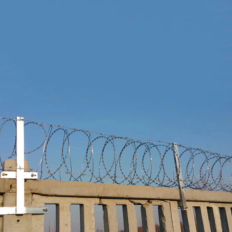 刀片滾籠型號(hào)分為BTO系列和CBT系列,國(guó)內(nèi)通常選用BTO-22型號(hào)。22代表的是刀片的長(zhǎng)度。具體形狀如下圖,鋒利是刀鋒使人不寒而栗。關(guān)于安裝固定:一邊選中支架固定。刺絲滾籠用在鐵路上一般用立柱支架和加密支架固定刀刺網(wǎng)。用在其他場(chǎng)所多用V型支架固定以確保刀片滾籠的穩(wěn)定性。綜上所述,如果對(duì)于選中刀片刺繩你還有疑問(wèn),可下方留言評(píng)論!
