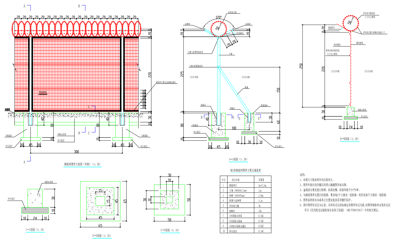 上圖為飛機場區金屬網圍欄的圖紙,以此款產品為例,進行詳細分析。