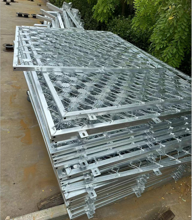在放風場的應用中,鋼網墻的高度需要達到2.5至5米左右。上部加裝Y型柱,有效防止犯人逃脫,同時上部還安裝了刀片刺繩,對人員也能起到一定的恐嚇作用。其他特殊規格的定做需求也可以滿足。