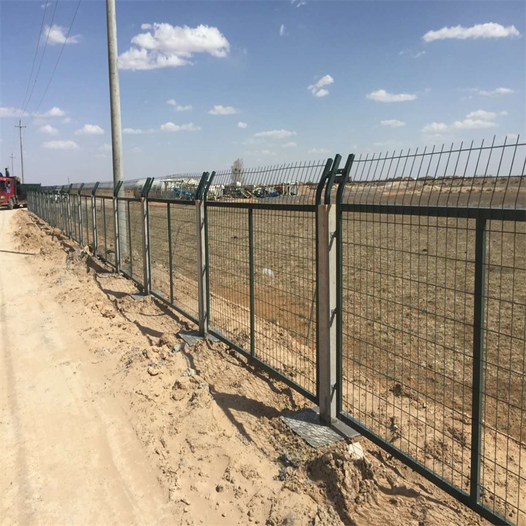 2. 材質與結構:立柱通常采用鋼筋混凝土或Q235鋼材質,網片由Q235矩管邊框和冷拔鋼絲組成,表面進行鍍鋅和熱浸塑處理,增強防腐性能。