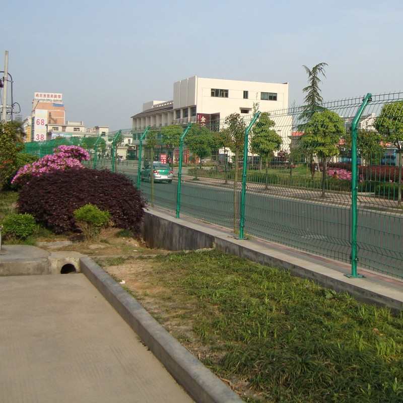 圈地圍網兩根立柱,柱中到柱中的距離正好是圍欄網片的寬度,或許要把這個尺度把握好才干順暢的裝置上護欄網片。