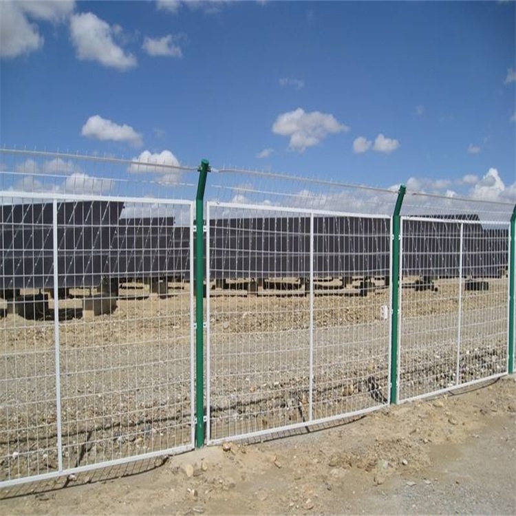 光伏圍欄網采用優質低碳鋼絲作為原材料,表面浸塑具有日久抗腐蝕、抗紫外線不怕雨淋的特點。是專門為光伏電站設計的防護設備,主要是用在光伏電站各個區域的防護和隔離。它有效防止了光伏電場內外的人身安全和變電器等設備的防盜,是電站首選的防護產品,具有較長的使用年限。
