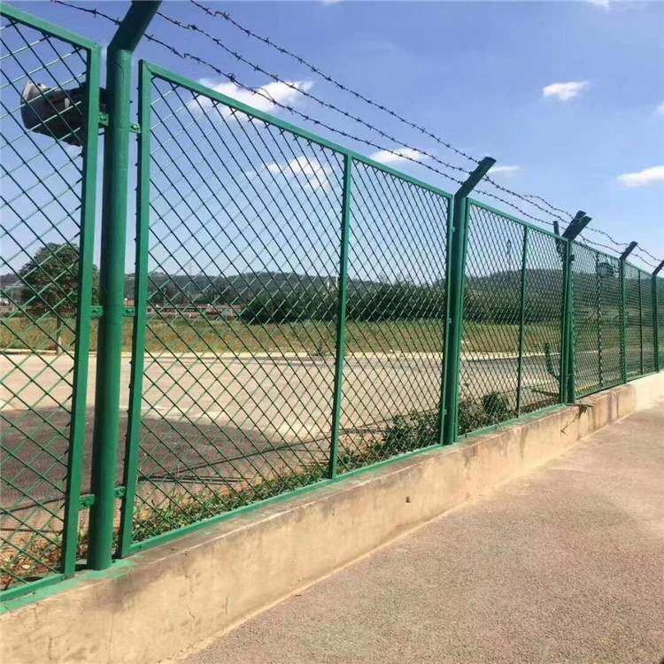 其材質(zhì)以熱鍍鋅 + 浸塑 / 噴塑為主,框架采用圓管或方管鋼結(jié)構(gòu),網(wǎng)片常用鋼板網(wǎng)、菱形網(wǎng)等,具備高強(qiáng)度、防腐防銹、抗老化的特點(diǎn),能適應(yīng)戶外復(fù)雜環(huán)境。