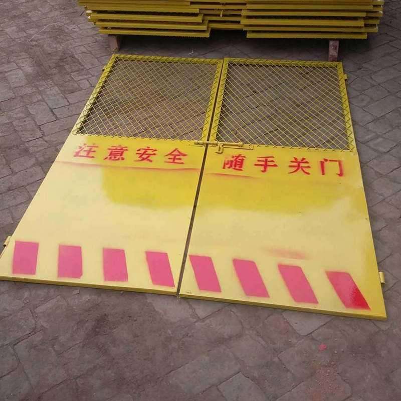 電梯防護門高強冷軋鋼板同時也是小型汽車普遍采用的材料,可以抗擊300kg以上的沖擊力。并且噴涂警示語和擋腳警示線,對工地文明施工形象顯著提升。門軸采用16#圓管焊結而成,大大簡化安裝程序,只需在外架鋼管立桿上與門軸相對應位置焊接90度直角圓鋼,把防護門掛上既可以使用,拆卸也同樣方便。