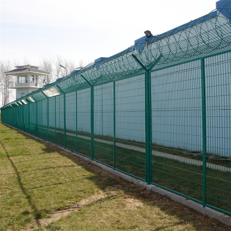 看守所防護(hù)網(wǎng)是看守所重要的安全防護(hù)鐵絲網(wǎng),常常被用于安全級(jí)別要求比較高的場(chǎng)所,如飛機(jī)場(chǎng)周邊圍界、監(jiān)獄看守所圍墻、私人領(lǐng)地、軍事邊防等領(lǐng)域。它不僅外形美觀,而且安全性高,由于防止人員攀爬翻越過邊界,因?yàn)榈纳厦鎾熘蝗τ忠蝗Φ膸е镀拇惕F絲,很容易劃傷人的皮膚,除非你長(zhǎng)著翅膀才能翻越過去。