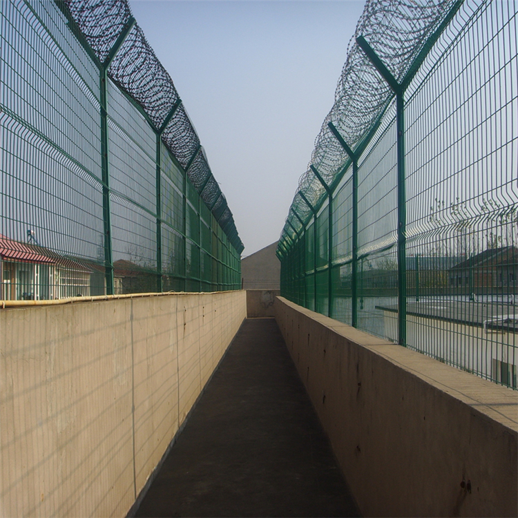 今天我們來談監(jiān)獄鋼網(wǎng)墻,談到監(jiān)獄,大家想到的都是威嚴(yán)、神秘、不可侵犯,正是由于監(jiān)獄的防護(hù)安全等級(jí)要求,我們才會(huì)根據(jù)相關(guān)規(guī)定設(shè)立了鋼網(wǎng)墻圍欄網(wǎng)。關(guān)于監(jiān)獄鋼網(wǎng)墻的樣式根據(jù)網(wǎng)片的不同可以分為五類:1.監(jiān)獄焊接鋼網(wǎng)墻;2.監(jiān)獄鋼板網(wǎng)鋼網(wǎng)墻(也叫菱形網(wǎng)鋼板網(wǎng));3.焊接刀片刺網(wǎng)鋼網(wǎng)墻;4.監(jiān)獄防攀爬密紋網(wǎng)鋼網(wǎng)墻;5.梅花刺片隔離鋼網(wǎng)墻。本文主要介紹監(jiān)獄焊接網(wǎng)片鋼網(wǎng)墻。如下圖所示