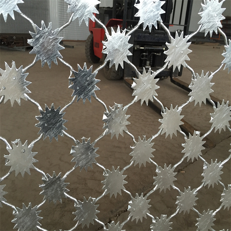 監(jiān)獄焊接隔離網(wǎng)的外觀防腐和執(zhí)行標準:防腐處理工藝為熱鍍鋅+噴塑。監(jiān)獄焊接隔離網(wǎng)的質(zhì)量要求:立柱及邊框噴塑處理,專用PVC塑粉,上塑量>0.7mm表面無針孔、開裂、漏塑、塑液流等不良現(xiàn)象顏色為乳白色。鋼筋焊接網(wǎng)噴塑處理:專用PVC塑粉,上塑量>0.5mm,表面無針乳、開烈、漏塑、塑液淀消等不良現(xiàn)象;頗色為乳,白色。刀片刺網(wǎng):刀片采用不銹鋼。防銹能力強材質(zhì)。