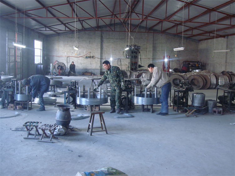 刀刺滾籠生產工藝 :刀片刺繩由熱鍍鋅板或不銹鋼薄板沖壓出尖銳的刀片狀,高張力鍍鋅鋼絲或者不銹鋼絲做芯線組合而成的防護產品,利用不銹鋼卡扣將刀片刺繩繞圈后相臨兩圈每隔120°用刺絲連接卡固定,張開后形成蛇腹網狀,閉合后刀片刺繩 圈徑為50cm,張開后每交叉圈安裝間距20cm,直徑不小于45cm。由于刺網造形獨特不易觸摸、形成立體圍護因而能達到極好的防護隔離效果,該產品具有嚇阻效果好、美觀、施工便利、線型可隨地勢變換、經濟實用等優異特點。